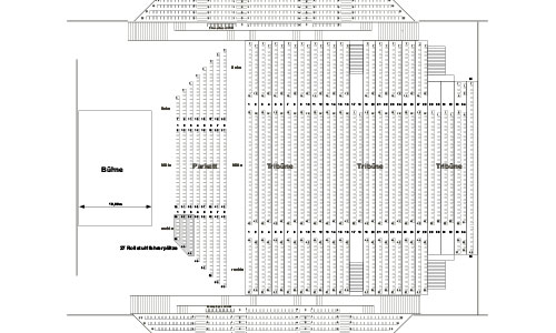 Reihenbestuhlung: Haupttribüne mit Bühnentiefe von 10,00m