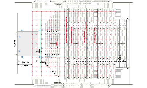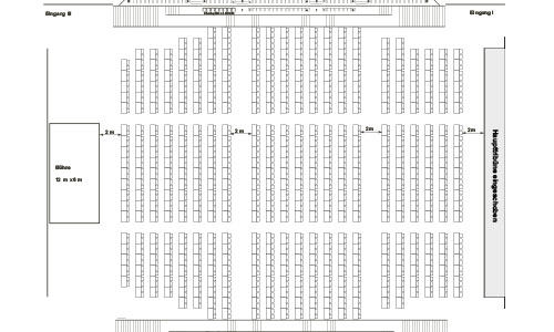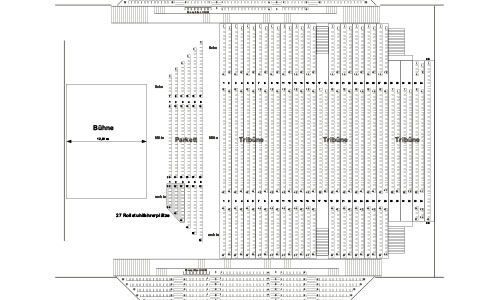 Reihenbestuhlung: Haupttribüne mit Bühnentiefe von 12,00m