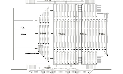 Reihenbestuhlung: Haupttribüne mit Bühnentiefe von 11,00m