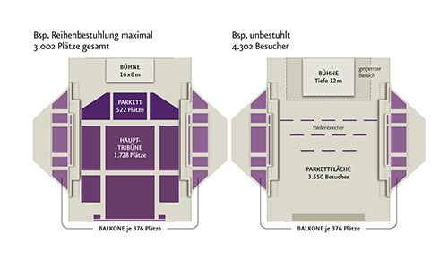 | Personenanzahl Reihenbestuhlung | 2.756 – 3.002 |