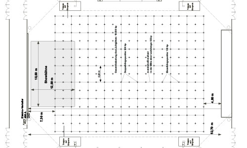 | Deckenhöhe in m | 7,65 – 8,3 |