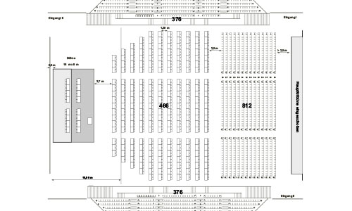 Reihenbestuhlung: Haupttribüne mit Bühnentiefe von 8,00m