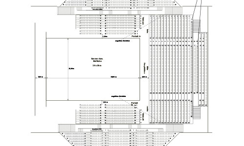 Reihenbestuhlung: Haupttribüne mit Bühnentiefe von 9,00m